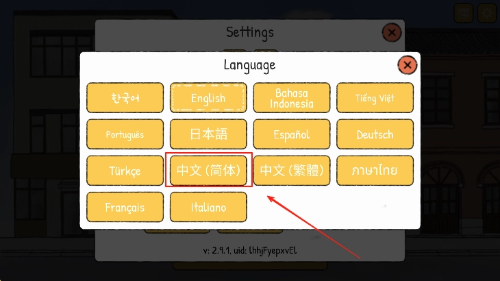 3、最后选择中文简体就可以将游戏设置成中文版。