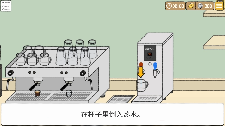 6、然后点击机器上方的杯子来根据顾客的订单加入热水、冷水、牛奶等配料。