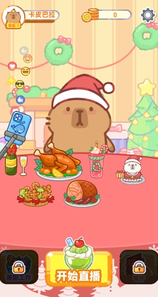 1、化身卡皮巴拉,化身美食博主,点击开始直播与粉丝分享你的美食。