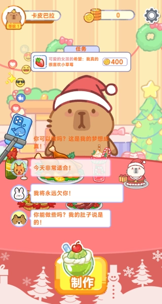 2、进入猜食物、招待客人等迷你游戏模式,完成对应任务获取金币,用于解锁新食材和直播间装饰品。