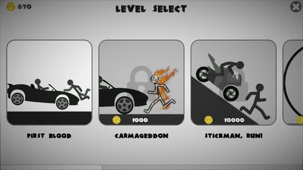 4、游戏内设置了大量关卡,能让你尽情感受火柴人多达360种的离奇死法。