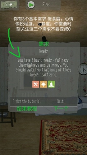 你有三项基本的需求,饱食度、快乐度和平静度,你要放置这些数值归零。
