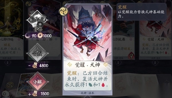 犬神是一个能抗能打的式神,上手难度低,对于新手非常的友好。犬神不但成长快,输出高,还有一个最明显特征就是“复活”,在达到2级后,就可以“心即归处”卡牌瞬发复活,到达3级觉醒后的犬神续航能力简直堪比“航母”,拥有“不死之身”的犬神会让对手非常的头疼。