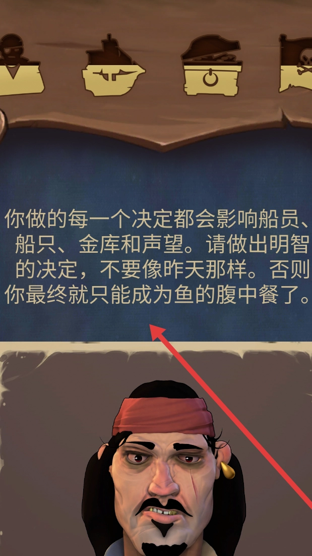 1、依据你舵手所带来的流程剧情提示,了解决策对船员、船只、金库以及声望产生的影响。