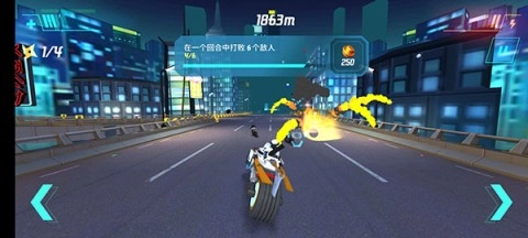 游戏界面简洁直观,主要涵盖任务功能、设置、排行、摩托车及装备更换等板块,且所有内容都围绕着开始比赛展开,足见游戏对玩法的高度重视。其采用跑酷风格的玩法,即便操控的是摩托车,却依然乐趣满满。玩家需在一场又一场的比赛里获取奖励,用以升级自己的摩托与武器。