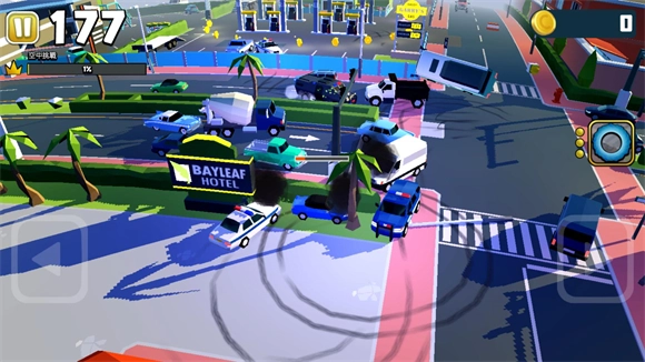 3、操控小车躲避警车的追捕来获得更高分数,收集路途中的金币可以解锁新车。