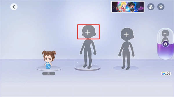 2、进入装扮间后点击【+号】进行添加。
