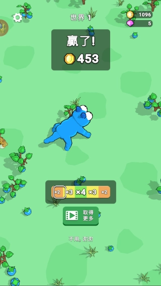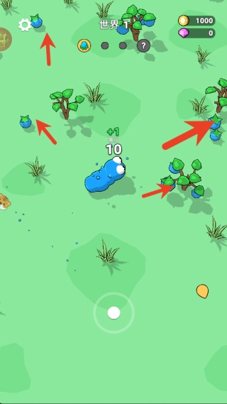 1. 玩家依靠手指滑动来操控动物移动,在地图上吞食比自身小的食物或生物以积累经验值。