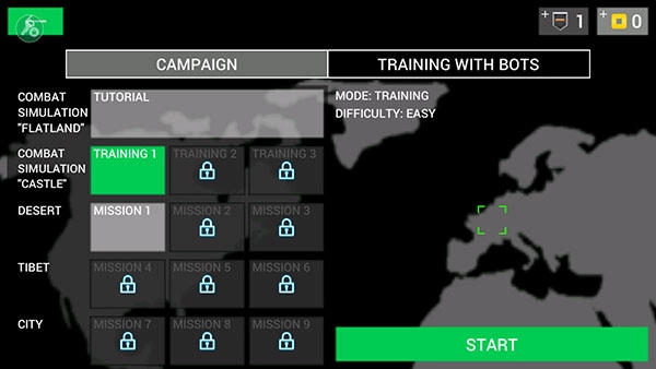 2、在单人模式中,选择要挑战的关卡后点击右下角的START即可开始,这里我们以TRAINING 1为例。