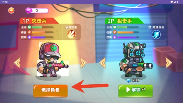 1、在本在下载该游戏并成功安装,选择心仪的角色及模式关卡,初始玩家只能从第一关卡开始挑战。