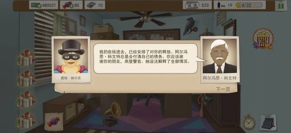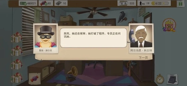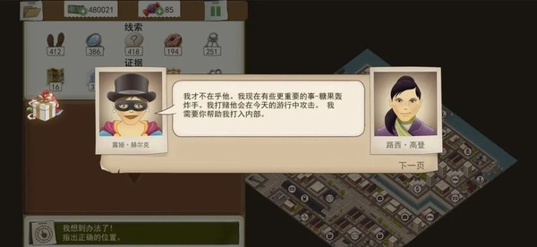 《又一个案子解决了》是一款别出心裁地把三消玩法与推理互动相融合的冒险解谜游戏。玩家在游戏里将化身为私家侦探,于颁布了禁糖令的虚构城市中对各类案件展开调查。玩家需凭借自身技能与道具去探寻线索、指认嫌疑人,最终成功解决案件。这款游戏的核心玩法为,玩家通过连线消除的方式收集线索,接着运用逻辑思维对嫌疑人进行审问以及对地点进行定位,从而实现逮捕凶手。游戏还融入了角色养成与角色互动等元素,玩家能够收集糖果,以此来升级自己的侦探技能,或者购买服装对角色进行装扮。