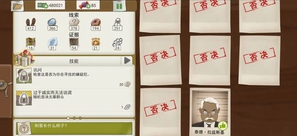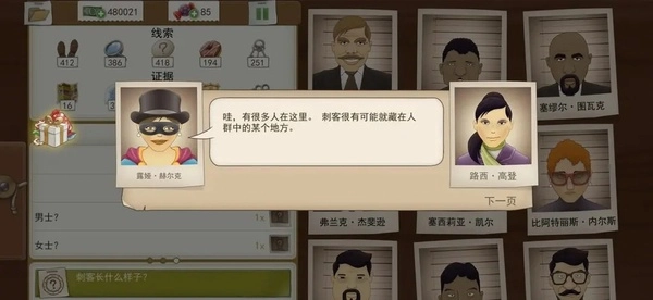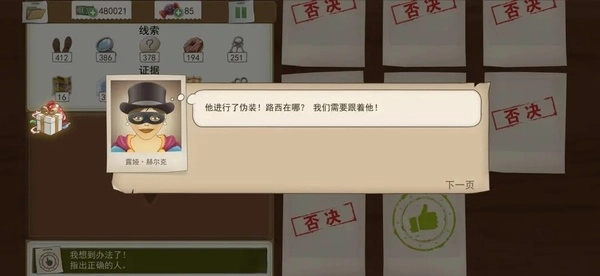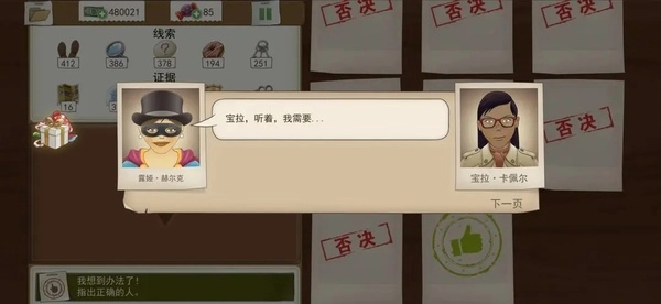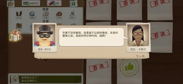 当然,还有个简单粗暴的方法,第一个场景结束的时候可以留几个指虎,这关可以直接用技能排除嫌疑人。