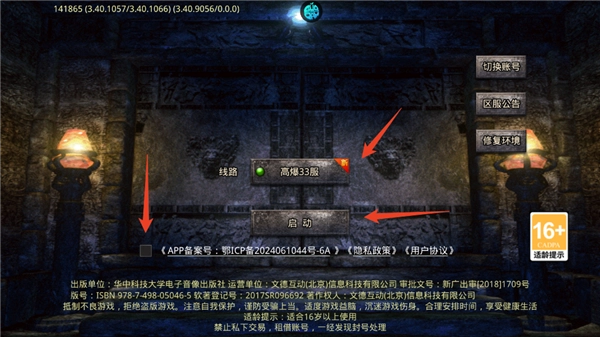 1、登录账号后首先同意使用协议,然后选择服务器,最后点击启动。