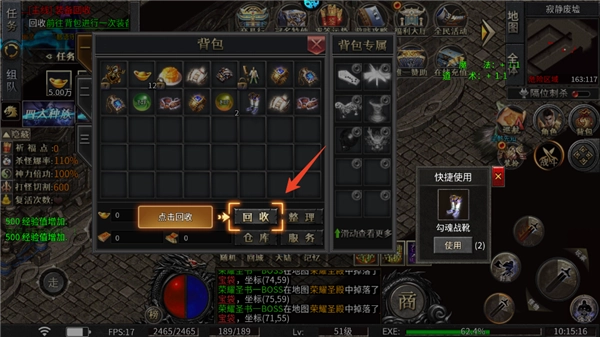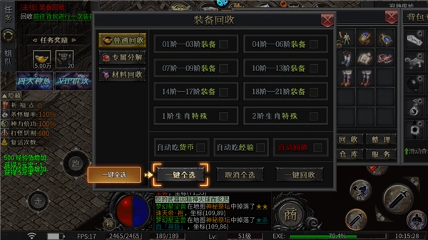 6、这款传奇还自带回收功能,可以让玩家把不用的装备换成各种资源。