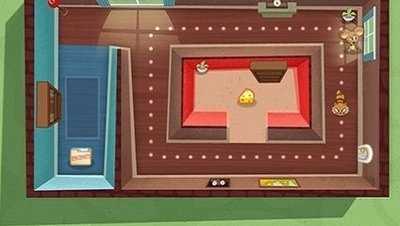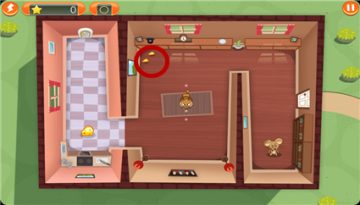 返回房间的间谍鼠移动速度增加,但时间有限。玩家需要把握好这个时机,跟在房间中间的黑猫身后,利用粉色房间的杯子作掩护,拿到最后一块奶酪。在利用最后一个杯子掩护,逃到大门外。