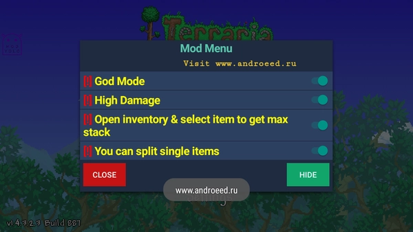 开始游戏后,点击左上角的圆形按钮,打开菜单mod,里面有以下选项: