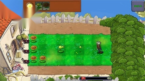 1、进入植物大战僵尸2010中文版游戏之后,会有太阳掉落,这个时候我们应该先拾取掉落的太阳,太阳是种植植物必不可少的资源;