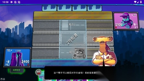 6.每个卡牌都有不同的技能,比如说这个帮手可以偷窃对手的金钱,但前提是要对手有钱。