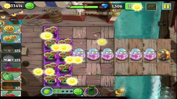 6、重要的一点:土豆雷和巴豆都不能秒杀带棺材的法老僵尸。两种植物的爆发都比较鸡肋,土豆雷瞬间钻出还算不错,可以应急也可以用来炸雪人(雪人走到第一格立刻放下,然后马上喂能量豆),但是它们的分裂能力太坑爹了,比较考验RP。