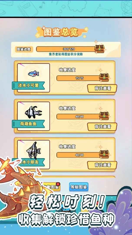 1、进入游戏之中开始挑战,各种不同的鱼类可以解锁