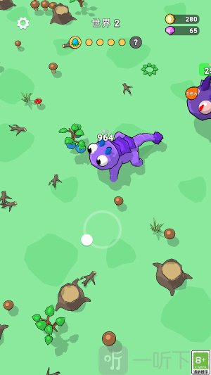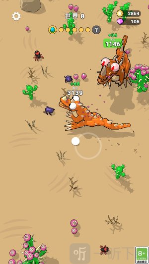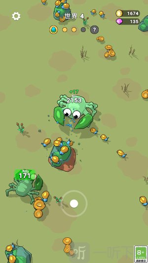 2.按住滑动屏幕控制小怪物移动,先吃旁边的小草,小虫子来为自己升级,遇到比自己高等级的怪物,尽快跑,先升级。