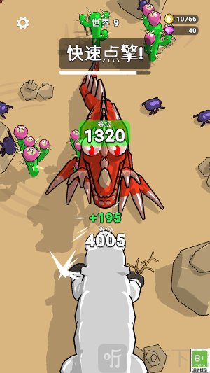 4.遇到关卡大BOSS,不要怕,等级没有差多少,快速点击屏幕,发射远程攻击,击败它获得胜利。