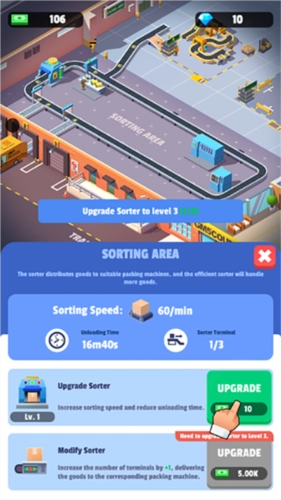 可以提升自己的技能水平,解锁更多专业的机器来进行货物分类和处理;这样可以提高快递处理的效率和准确性;