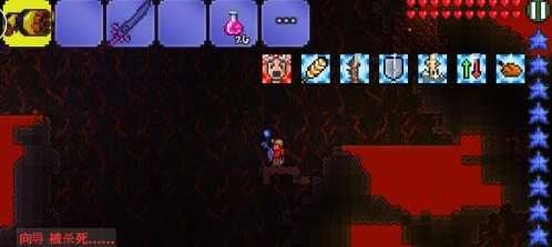 5、肉山可以在地狱中,使用向导巫毒娃娃道具进行召唤,与肉山对抗前,最好提前铺设一个空中平整的道路,方便边退后边输出,击败肉山进入到后期世界。