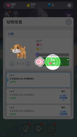 2、爱心在星光庭院中有许多许多用处,那么先召唤一只新的小动物来到这里吧。