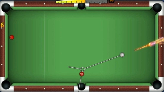 击球规则。玩家轮流击打白球撞击其他彩球,无犯规时交换击球权,若击落自己的球,可再击一次。