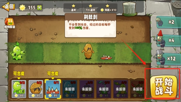4、完成好相应的种植后点击开始战斗游戏就开始了