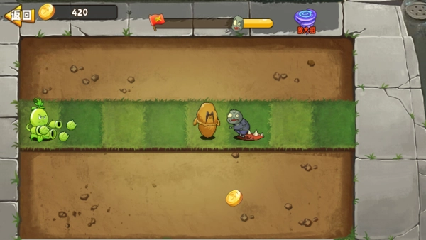 4、开启升级后的战斗,置身战场迎接挑战,体验豌豆等角色植物之间的对战。