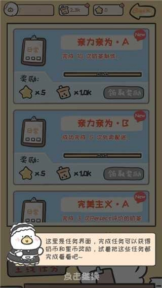 11、点击左下角的书图案,里面是任务界面,玩家完成相应的任务会获得相应的奶币和星币奖励