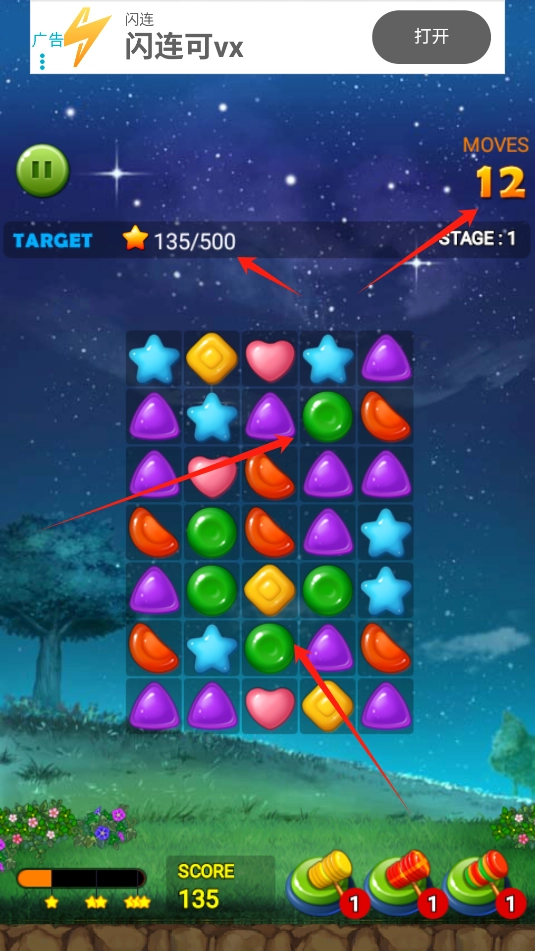 果冻星星消消开局教学