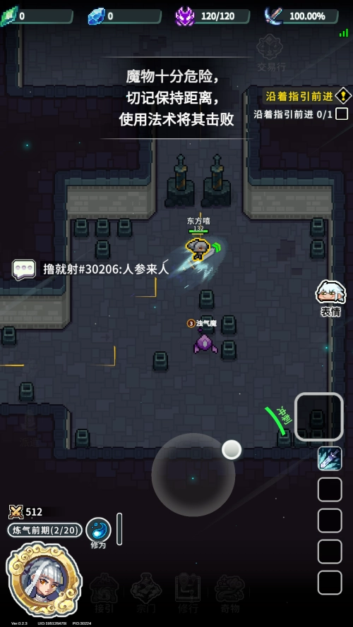 4、操控摇杆,左右控制角色行走,收集灵气,提升自己。