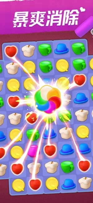 1、简洁美观的游戏界面,海量精心设计的游戏关卡等你来玩,趣味三消玩法。