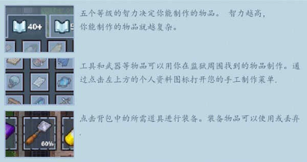 你的目标即是越狱,期间你可以做的事情很多,越狱的方法也多种多样,但如何越狱完全由你决定。
