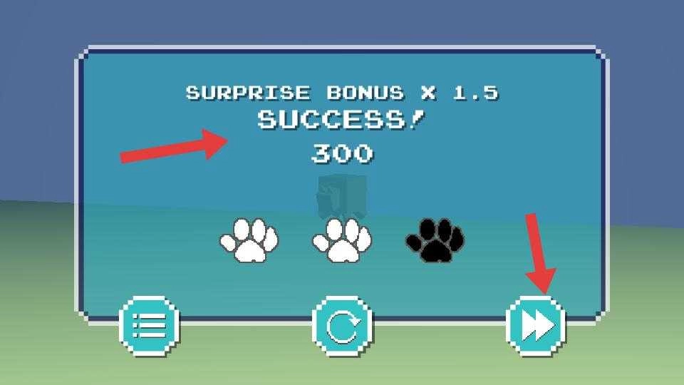 4、成功恶作剧猫咪后,会显示SUCCESS界面,能看到获得的奖励等,此时可选择继续挑战下一个关卡等操作。
