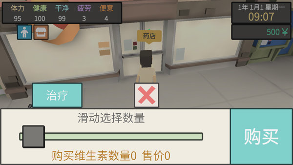 5、如果健康度过低,玩家可前往药店购买维生素等药品;