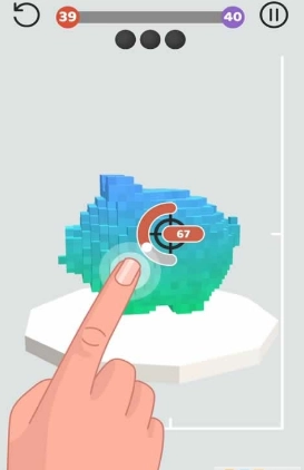 1、一只手指就能操作的模式,在场地上自由的滚动,摧毁图形建筑;