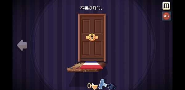 6、把法国国旗放到门的下方,用鼠标光标开门锁,剧情对话后,再次用鼠标光标开门锁,然后迅速点击门下的法国国旗(如果点慢了会拿不到钥匙,需要再次用鼠标光标开锁),得到钥匙,用钥匙开门。