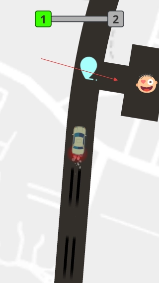 2、进入关卡后通过滑动屏幕等操作方式,控制出租车在道路上行驶,把需要帮助的顾客送到想去的地方。