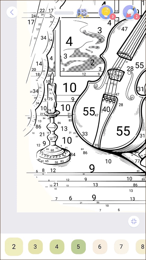 点击图片后我们就进入到了填色的界面,很多小伙伴就是在这开始发蒙的,不知道干什么了,我们可以放大一下就能看见图片麻麻的数字了。