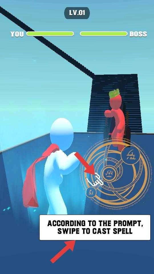 2、开启不同的魔法技能突破关卡,全力以赴战胜敌人,加速冲刺。