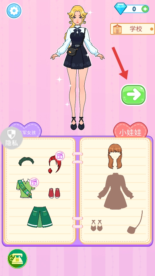 3、穿搭完成后,点击右侧绿色箭头,确认造型。