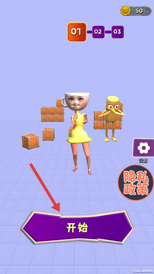 1、点击主界面紫色【开始】按钮,进入关卡01。