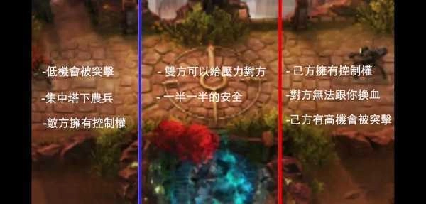 10、在这个图片,以左边为自己的塔来说的话呢,兵线控制到左边的时候, 自己会有比较低的机会被gank。