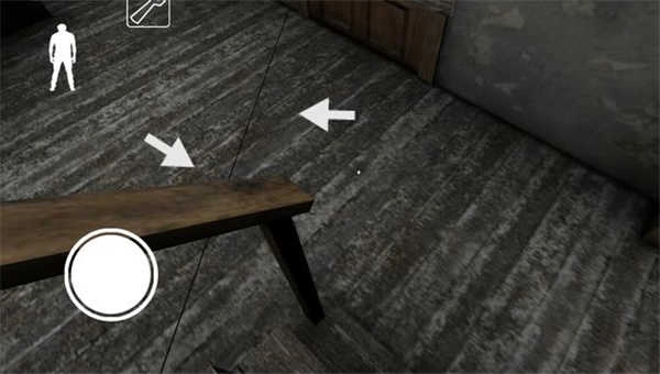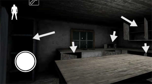 下楼梯后左边的地板上有一根黑线,从上面走过铃铛会响,需要注意。楼梯旁的柜子里可以躲,柜子对面有一个门,里面可能刷东西。柜子旁边有一个门通向地下室(由于画面较暗