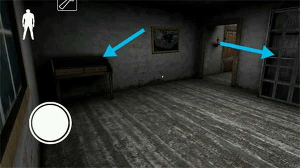 这是出生房,靠近床时点击右上角可以躲进床下,衣柜里也可以躲进去,床头柜左边的抽屉里有三行红字:Leave this house(离开这个房子),右边的抽屉里一般不会刷东西(反正楼主木有遇到过)。房间里只有花瓶和摆花瓶的桌子能被推倒,花瓶可以拿起扔在地上。在Day2(第二天)时出生房的门会被锁,所以需要扔花瓶或推倒桌子吸引奶奶过来,然后躲进床下或衣柜等奶奶离开。