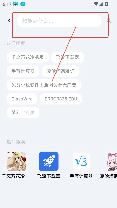 还可以点击上方搜索框,输入关键词,精准检索喜欢的应用